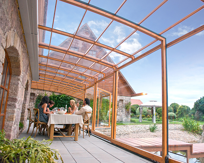 Wanneer u uw overkapping sluit wordt u beschermd tegen wind en regen, maar kan u nog steeds genieten van uw tuin.